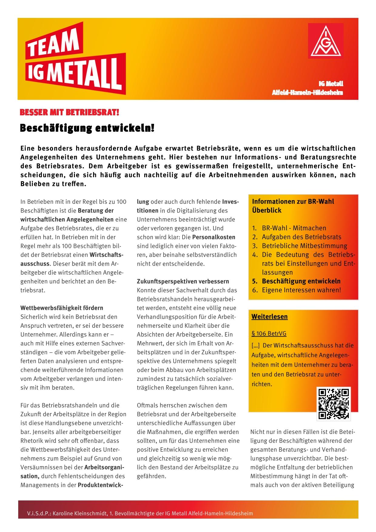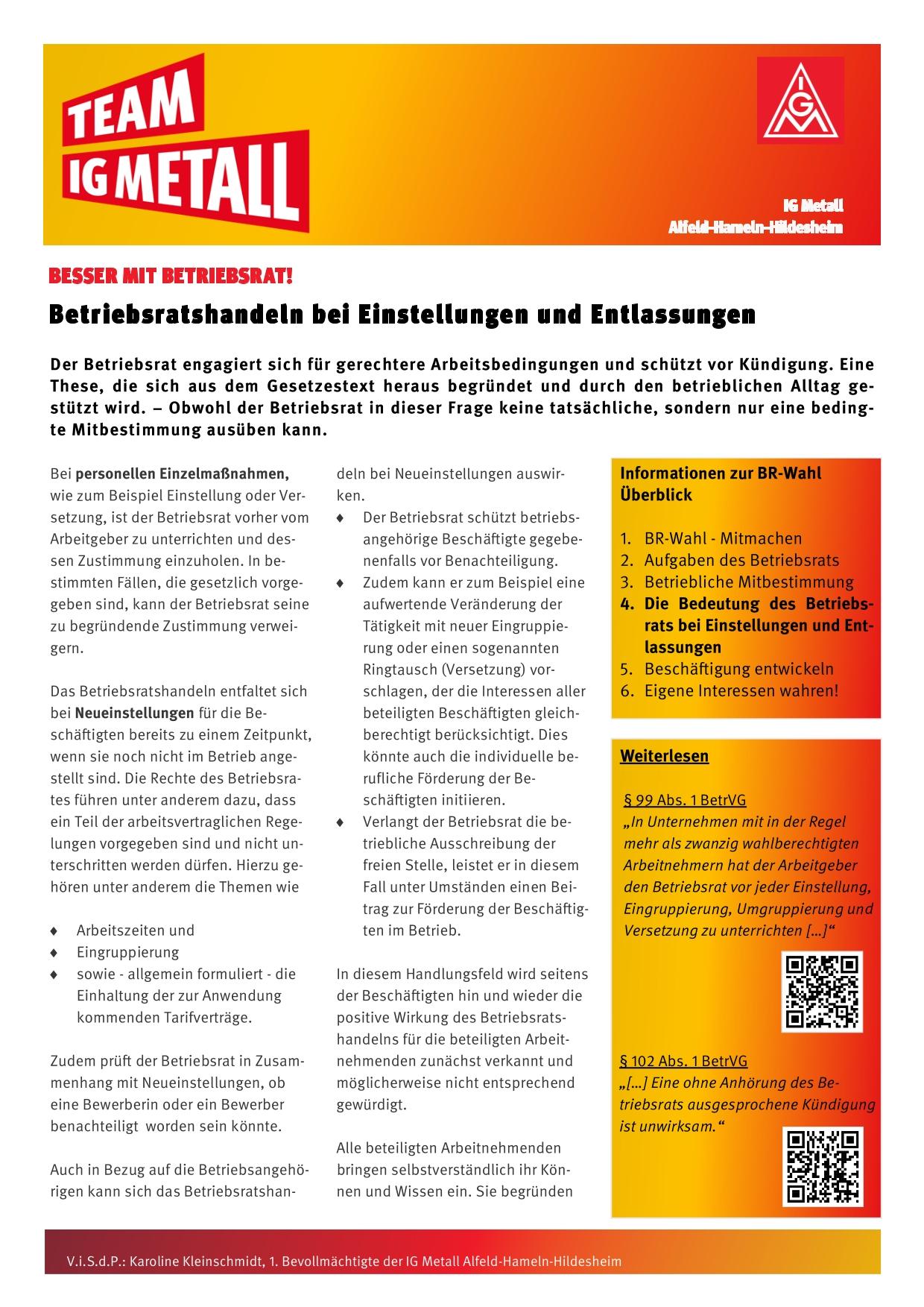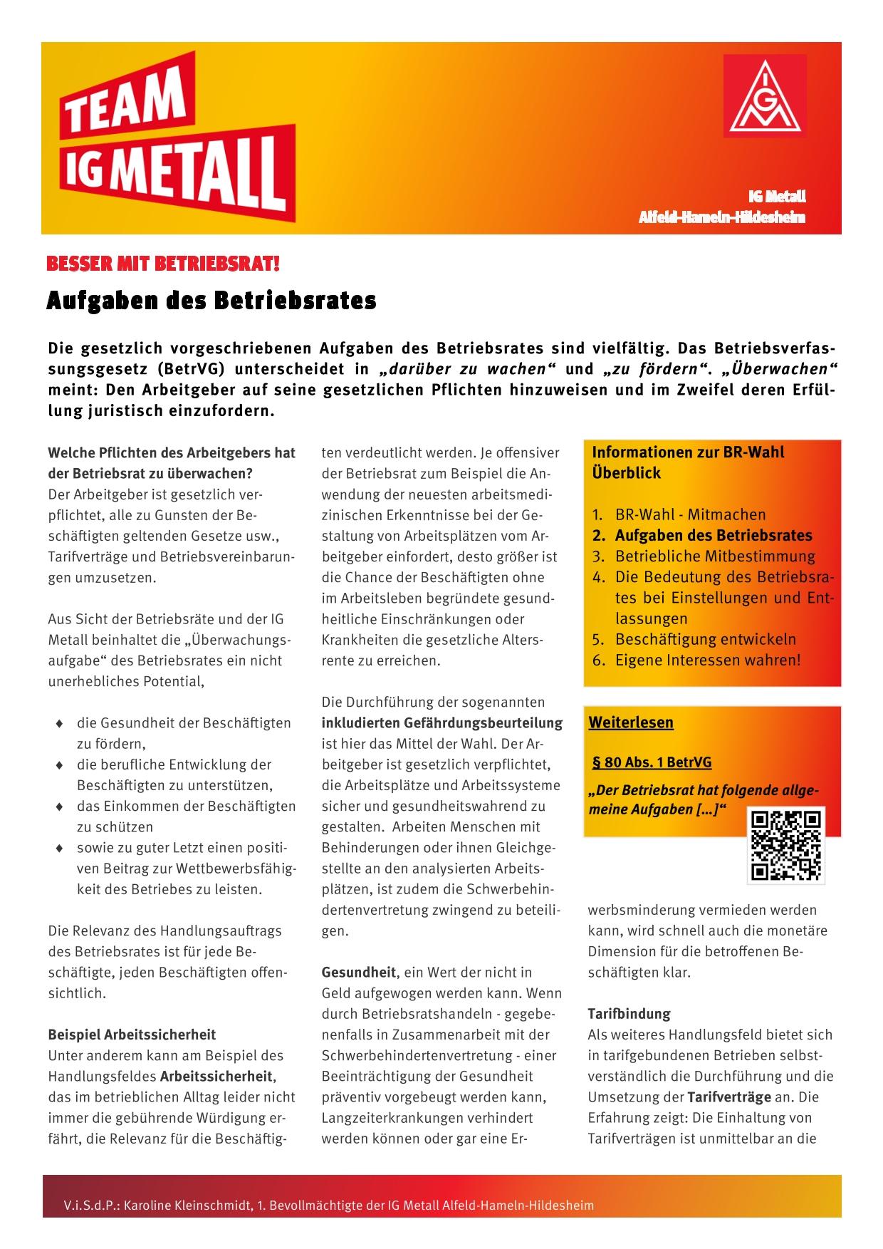 Die Thesen werden an Themenfeldern der Betriebsratsarbeit im Rahmen einer sechsteiligen Informationsreihe „Besser mit Betriebsrat“ erläutert. Letztendlich sollte nach der Lektüre der Flugblattserie "Besser mit Betriebsrat" die Frage „Gehe ich wählen?“ beantwortet sein und sich im Grunde nicht mehr stellen - der Gang an die Urne für alle Arbeitnehmenden eine Selbstverständlichkeit sein.