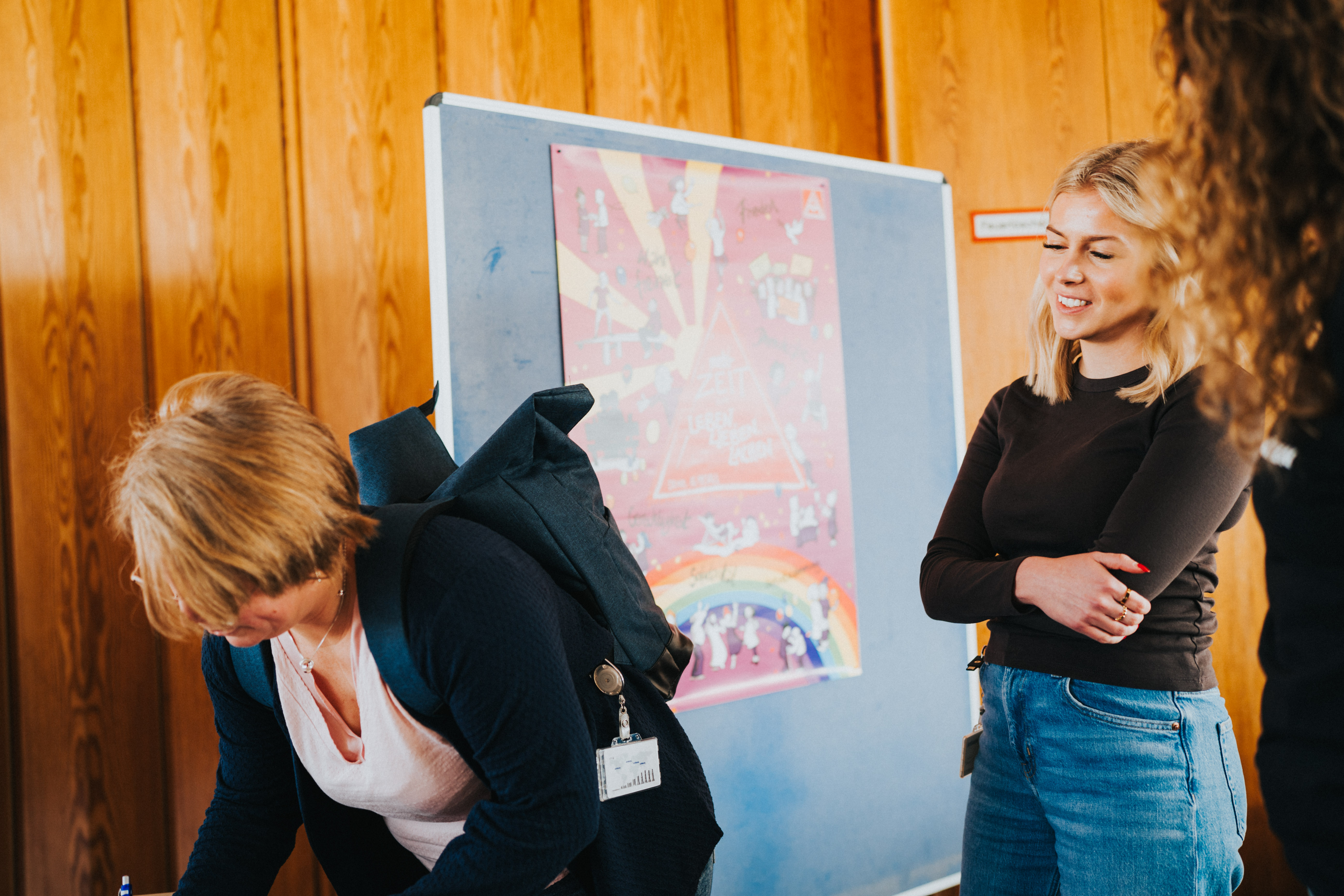 In diesem Jahr haben wir den Frauentag genutzt, um ein paar Stimmen zum Thema „partnerschaftliches Verhalten am Arbeitsplatz“ einzufangen. Es gab eine „interaktive Umfrage“. Die Kolleginnen waren aufgefordert, zu verschiedenen Oberthemen ihre persönliche Einschätzung abzugeben. Aufgegriffen haben wir die Themen Wertschätzung, Augenhöhe und Zusammenarbeit, Grenzen und Fairness sowie Mut machend und aktivierend.